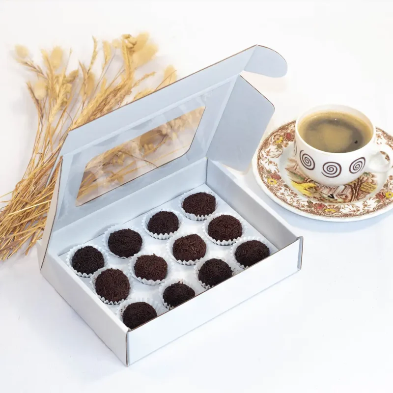 Caixa Branca para 12 Brigadeiros (com Janela e divisória)
