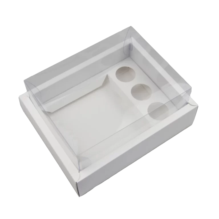 Caixa Branca para Ovo de Colher (150g/250g) com Tampa Acetato – 20x16x5cm