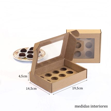Caixa para 12 Brigadeiros Kraft (com Janela e divisória)